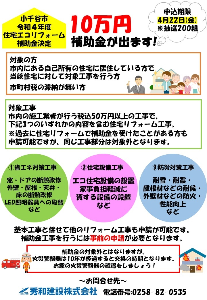 2022.04.01小千谷市令和4年度住宅エコリフォーム補助金受付が始まります