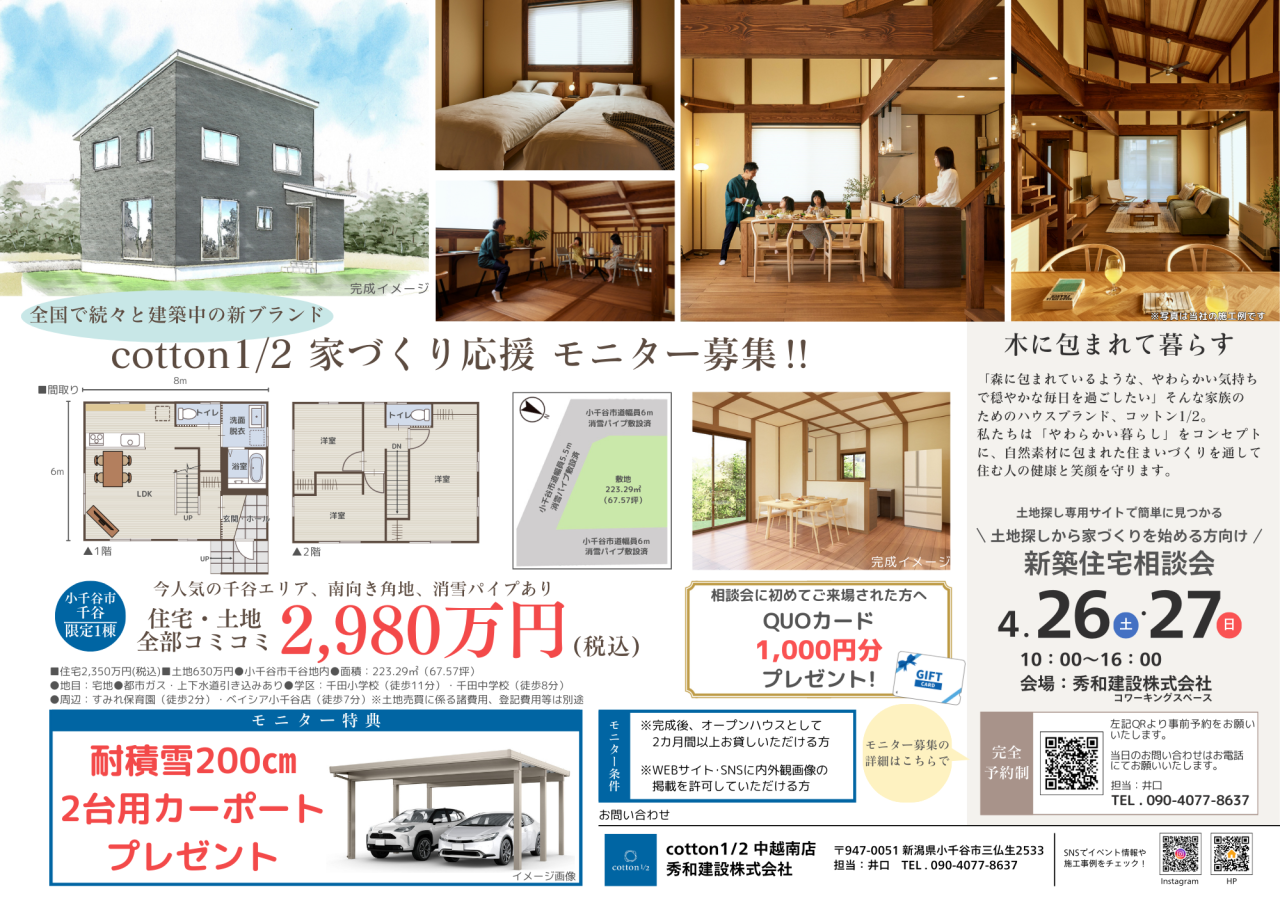 2025.04.18cotton1/2モニター募集・新築住宅相談会開催