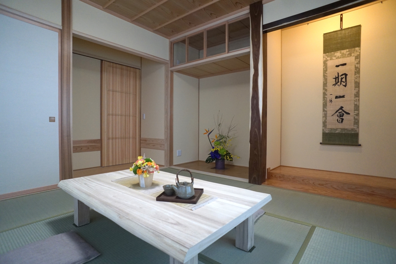近所の方と楽しくお茶ができるように玄関からすぐに客間を作ったことと、土間を広くして冬は薪ストーブを眺めながらゆっくりお茶や世間話ができるようにしたことです。